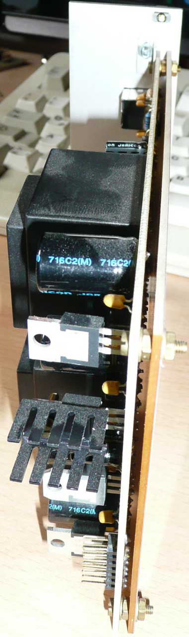 Ich habe bei mir hinter jeder Platine als Berührungsschutz eine einseitige Eurokarte mit Kupfer und Fotolack montiert. Die Seite mit dem Kupfer natürlich auf der Außenseite und als Befestigungslöcher die sowieso schon vorhanden Löcher der ctLab Platinen benutzt. Einfach etwas längere Schrauben rein und die dahinterliegende Platine damit festgeschraubt. Zwischen der Hauptplatine und der Berührungsschutzplatine habe ich eine Mutter dazwischen, damit die zweite Platine genug Abstand hat um nicht an der Einschubschiene hängen zu bleiben. Die Folie über dem Fotolack habe ich drauf gelassen und sie ist dahingehend nützlich, dass die Kupferseite mit der Zeit nicht oxidiert. Das sieht sonst so unschön aus. :wink: