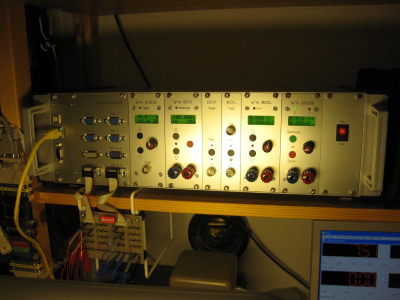 anbei mal ein Bild von meinem aktuellen c't-Lab: ADA (Vollausbau mit Panel) und DCG/DCP. PS3-2 ist noch nicht eingebaut. Alles mehr oder weniger Standard von der Stange bzw. von seg*r, reich*lt und scha*ffer. In Planung: DIV und EDL. Damit ist die "Kiste" dann voll. Und was baue ich dann? :wink:
