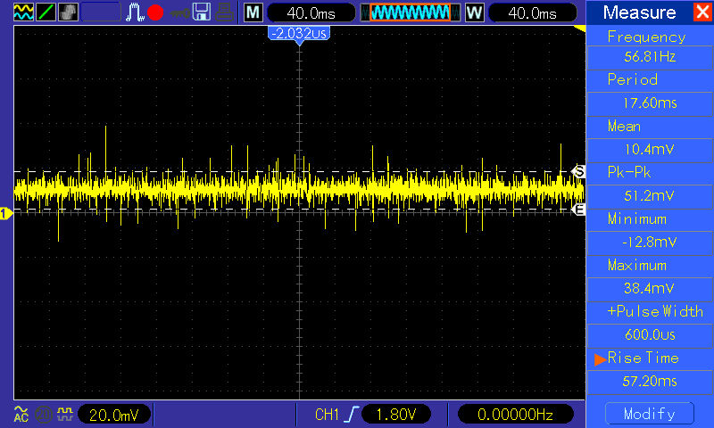 Da ich mit der Diode keine Vernünftigen Kurven ( nur eine Gerade waagerechte ) hinbekommen habe habe ich einfach einen 100 Ohm / 2W Widerstand an PL7 Out+ und Out- angeschlossen, jedoch mit dem selben Ergebnis.