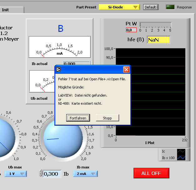 ist inzwischen einiges an Zeit vergangen und nach dem Kalibirieren meiner beiden DCG16-Module wollte ich mal das VI Bipolar Test.vi mit einer einfachen Si-Diode 1N4148 testen. Leider kommt nach anklicken des " Ausführen " Button die Fehlermeldung im Anhang.