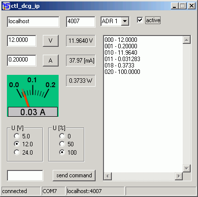 - Eingabefeld unten links: beliebige Kommandos abschicken (z.B. TMP? oder IDN? oder ....), Antwort erscheint dann im Textfenster